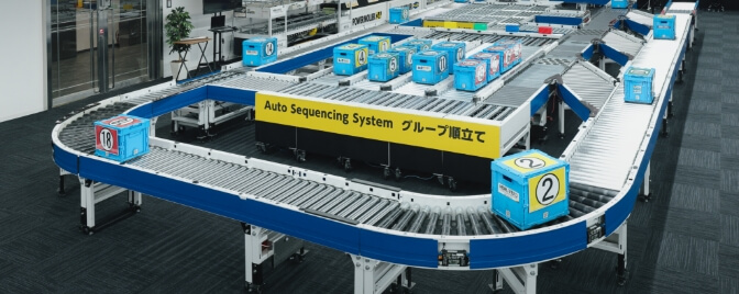 高速ソーティングシステムid-SORTERMDR駆動のストレートコンベヤや直角分岐モジュールを自由に組み合わせることで構築できる、フレキシブルな高速ソーティングシステムです。