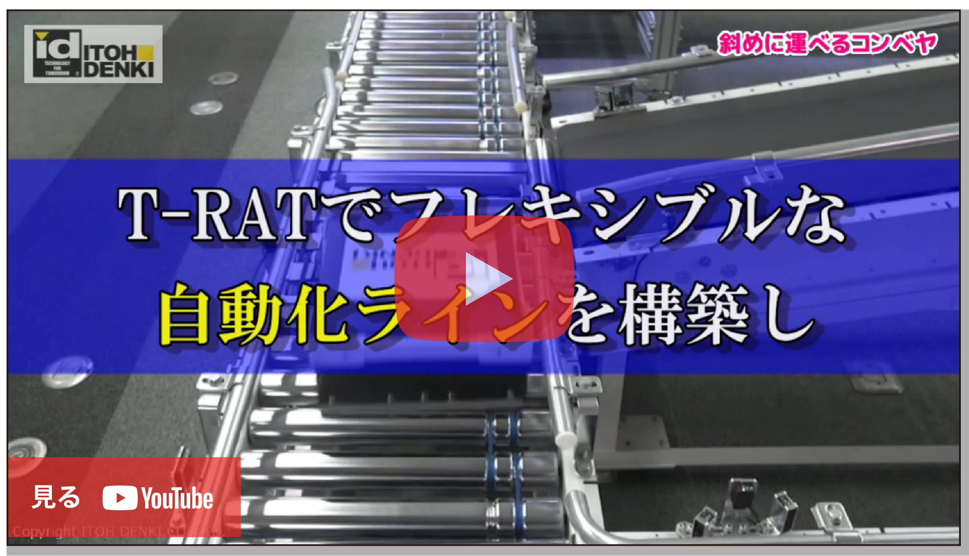傾斜コンベヤ等への乗り継ぎ時に、搬送物へ衝撃を与えることなく直角移載する「T-RAT」をご紹介します。