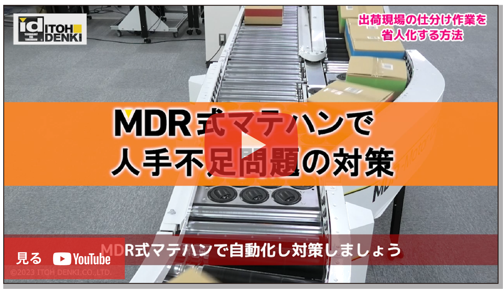 仕分けに多くの作業スタッフを必要とする出荷現場を、MDR式マテハンで自動化し