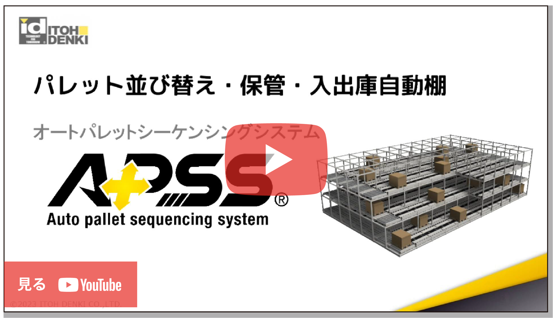 今回は、パレット並び替え・保管・入出庫自動棚「APSS」です。