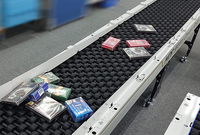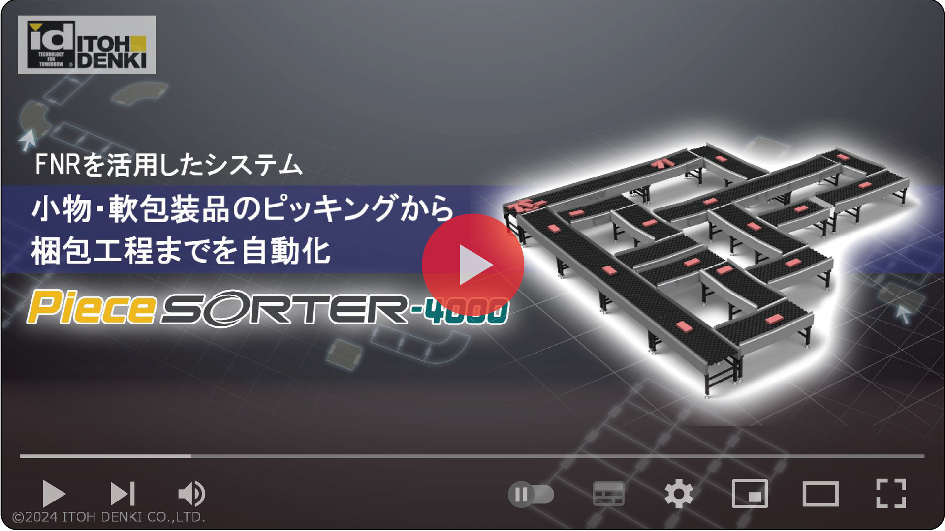 FNRは、独自開発の搬送物に加わる衝撃を吸収する弾力性をもった樹脂ローラを、DC24Vブラシレスモータ搭載パワーモーラ(MDR)で駆動させるローラです。分散駆動で荷物をバラして、整列、仕分け搬送が静音・省エネで行えます。EC物流で増える小物・軟包装品に最適なモジュールです。
