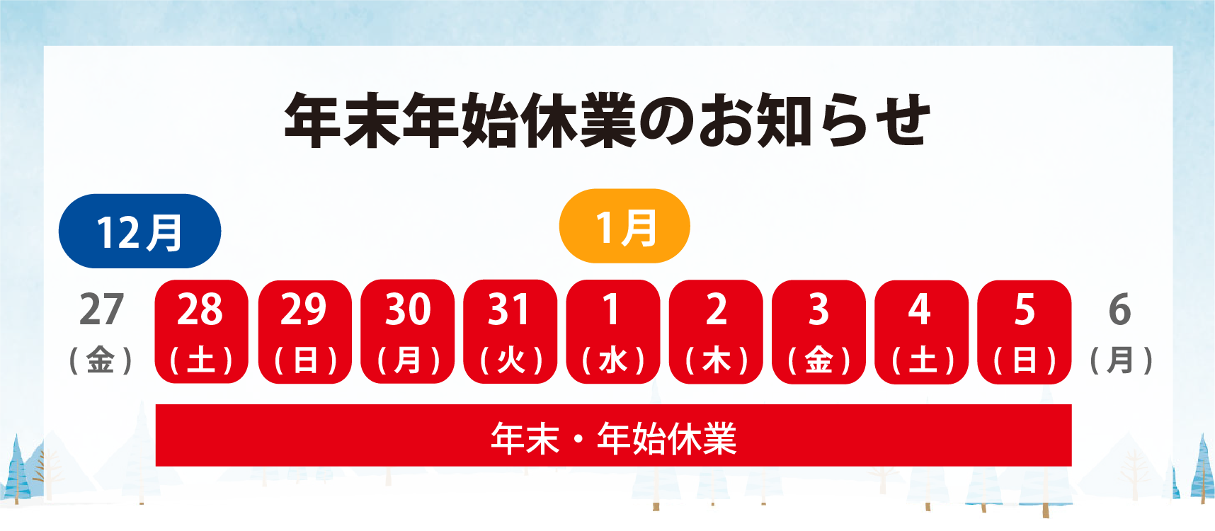 年末年始休業日のお知らせ