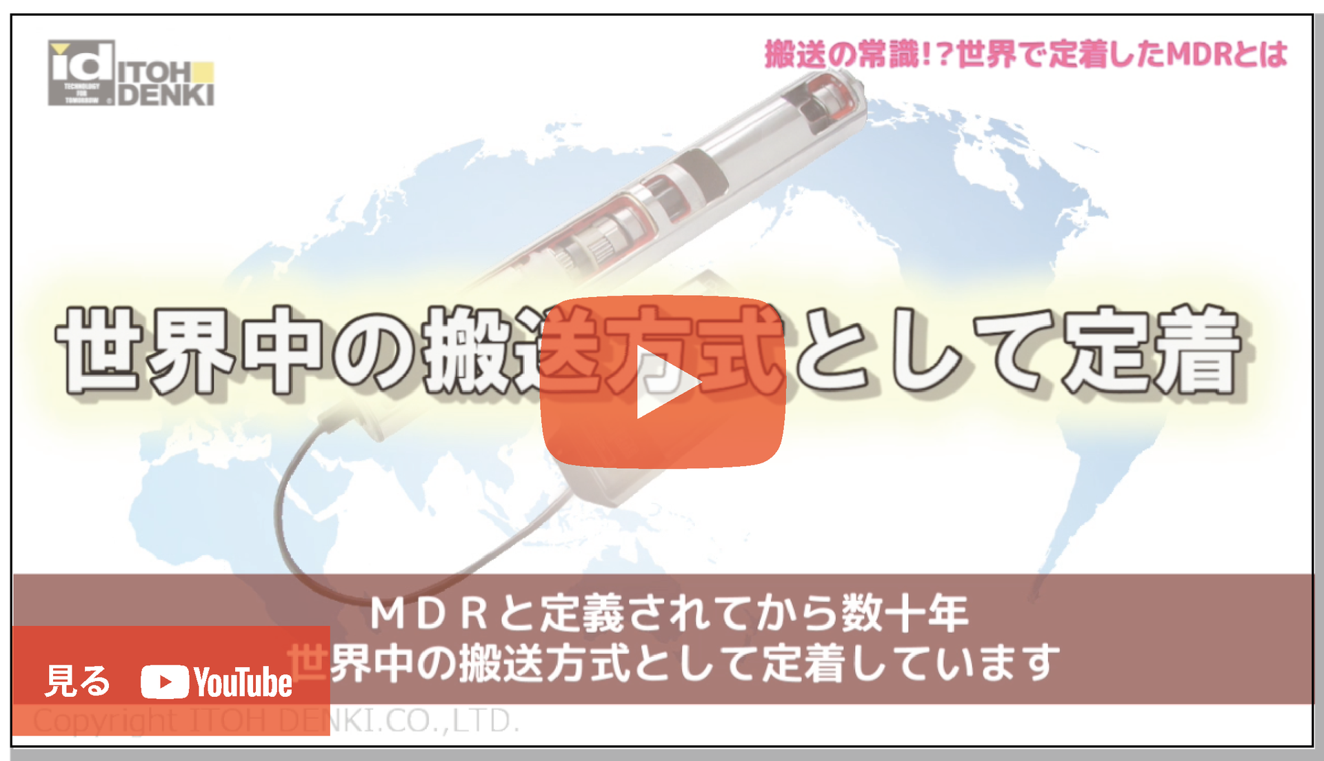 搬送の常識!!世界で定着したMDRとは 動画が視聴できない場合はこちら をクリックしてください。 伊東電機のコア技術である「MDR」は物流倉庫や製造現場で大活躍している製品です。 本日は何故MDRと呼ぶのか?その理由などをご紹介いたします。 これを機会に改めてMDRの魅力に触れてみてください。