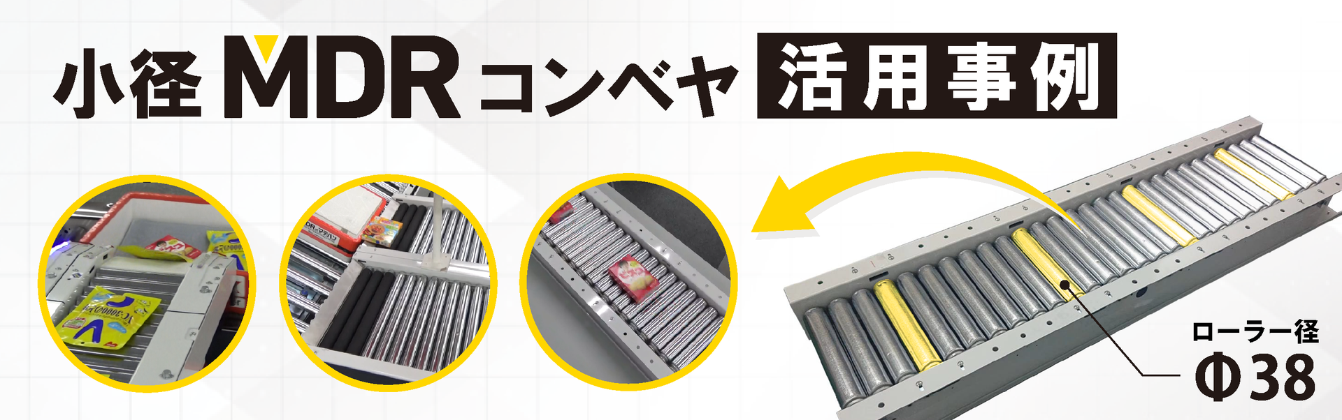 生産性が向上する小物搬送コンベヤの活用事例をご紹介 動画が視聴できない場合は こちら をクリックしてください。 小物搬送の主流はベルトコンベヤでしたが、弊社の小径MDR(Φ38、Φ42.7)コンベヤで運び方を改革します。自動化システムと組み合わせて使用することで、ベルトコンベヤでは行えなかった搬送により稼働率・生産性が向上します。