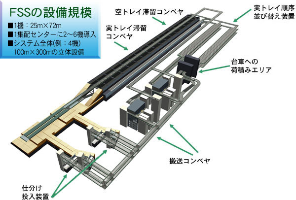 米大手マテハンシステムメーカーのN社がインテグレーターとなって開発した、自動配達順仕分けシステム・FSS(Flats Sequencing System)は、フラットメール・雑誌類など定形外郵便物を個人別まで配達順立てし、コンテナに自動投入するシステムで、この10年間で「全米250か所に計500基」が導入される計画となっています。