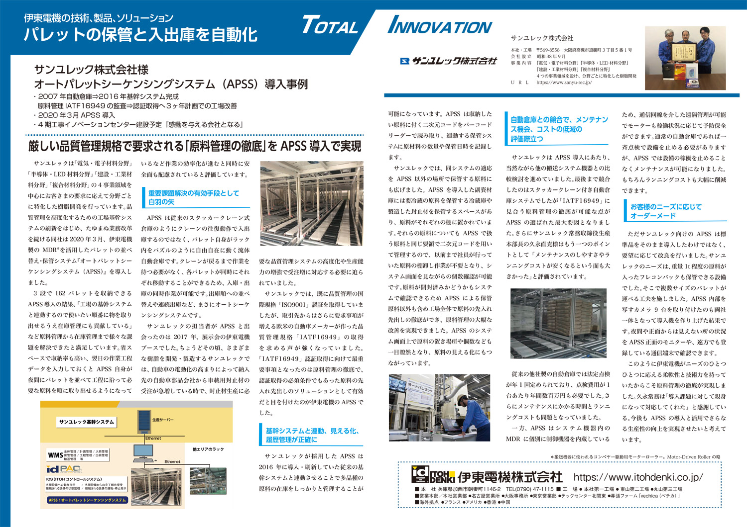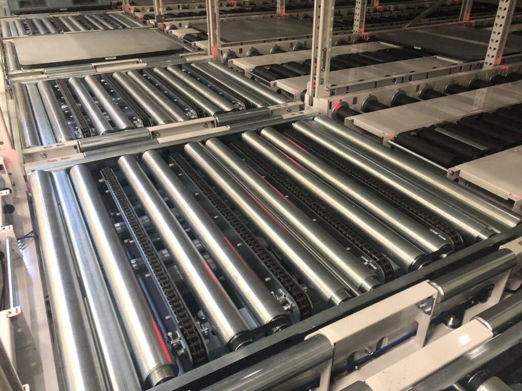 APSS(オート・パレットシーケンシング・システム)は、 パレット搬送コンベヤのストレートユニットとパレット直角分岐装置を組み合わせたパレット並び替え・保管・入出庫自動棚です。