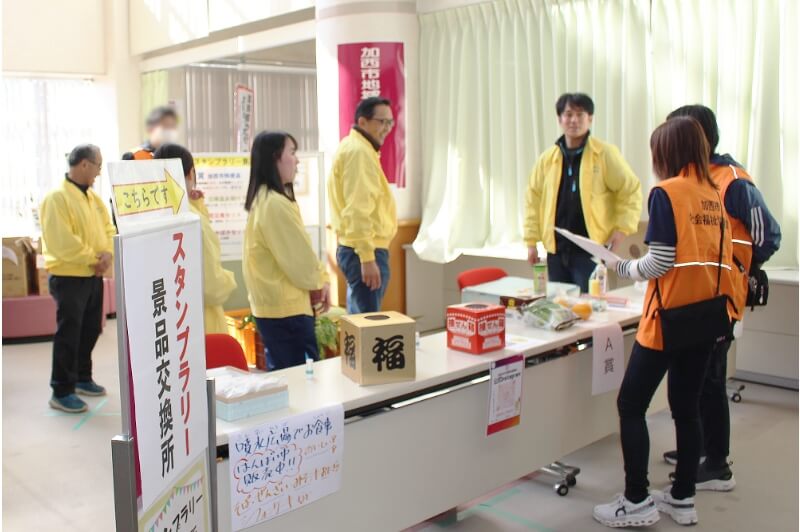 地元・加西市の社会福祉協議会が主催する「社協まつり」にスタッフとして参加し、スタンプラリーの景品として当社植物工場で栽培したレタスを提供しています。
