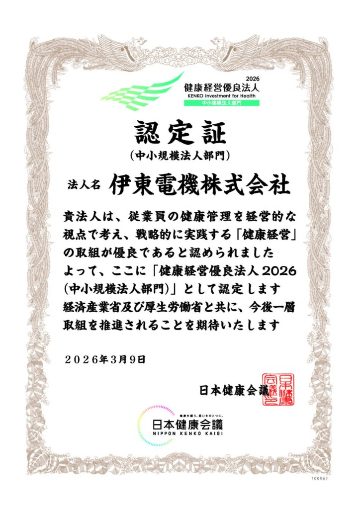 伊東電機は、2019年から今回で8度目、連続で認定されています。