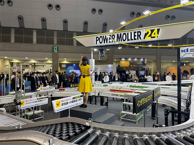 伊東電機は、省スペースで設置ができる、処理能力15,000ケース/時間のソーティングシステムを実演でご紹介しました。