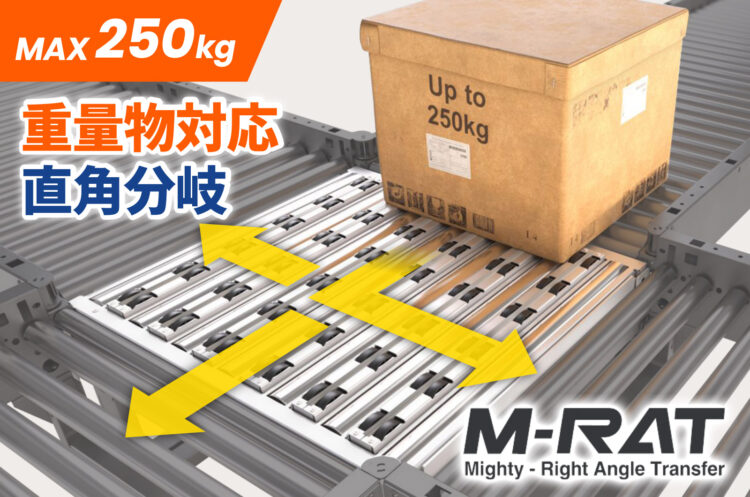 F-RATは搬送物を上下動させない機構設計で、搬送物に衝撃や振動を加えないフラットでシンプルな直角分岐モジュールです。