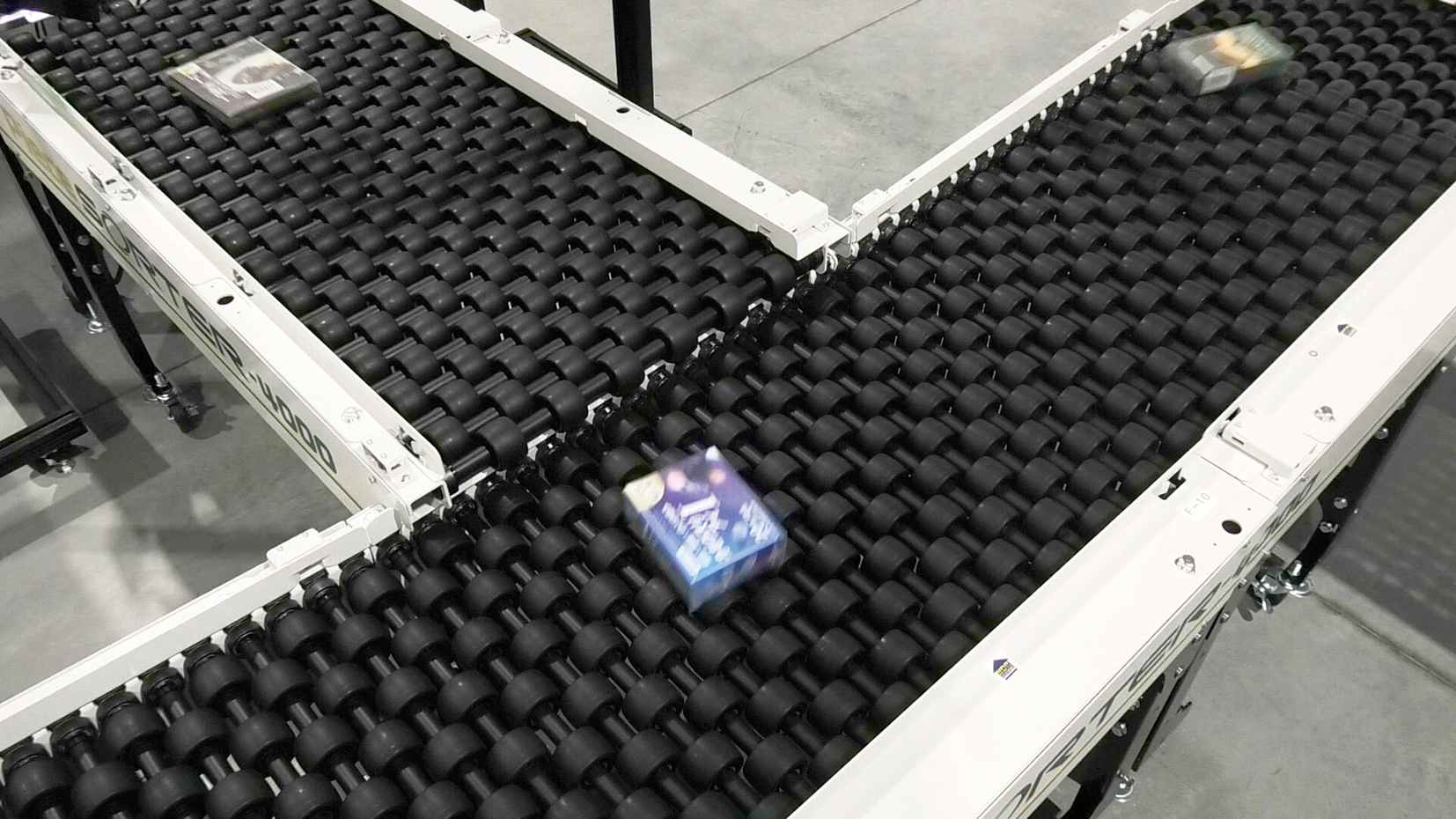 独自の衝撃吸収ローラを分散駆動させ整列搬送が行えます。EC物流で増える小物・軟包装品に最適なモジュールです。