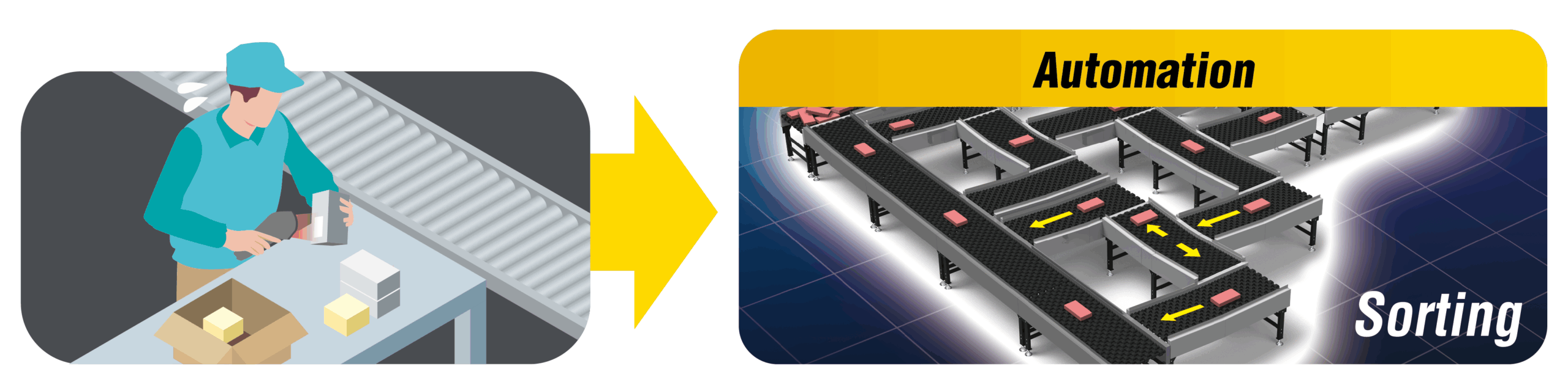 搬送物のトラッキングとMDRの分散駆動で商品を切り離し、整列させ、正確な仕分けを実現。生産性アップ。