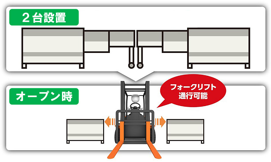 ・向かい合わせに設置すれば、パレットやフォークリフトも通行可能