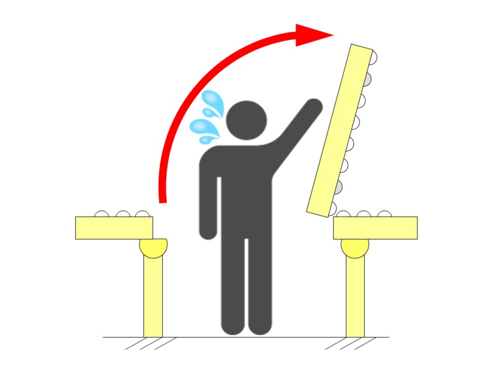 従来の跳ね上げコンベヤと比べ、負担を軽減しながら横断動線を確保。さらに、独自のLSL制御技術により、リミットセンサーを使わずスムーズなスライド開閉を実現します。