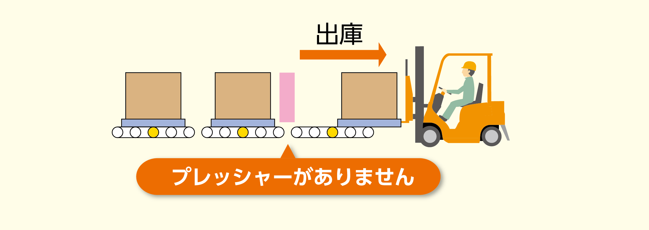 パレットにプレッシャーがかからないため、奥のパレットを気にせず出庫できます。