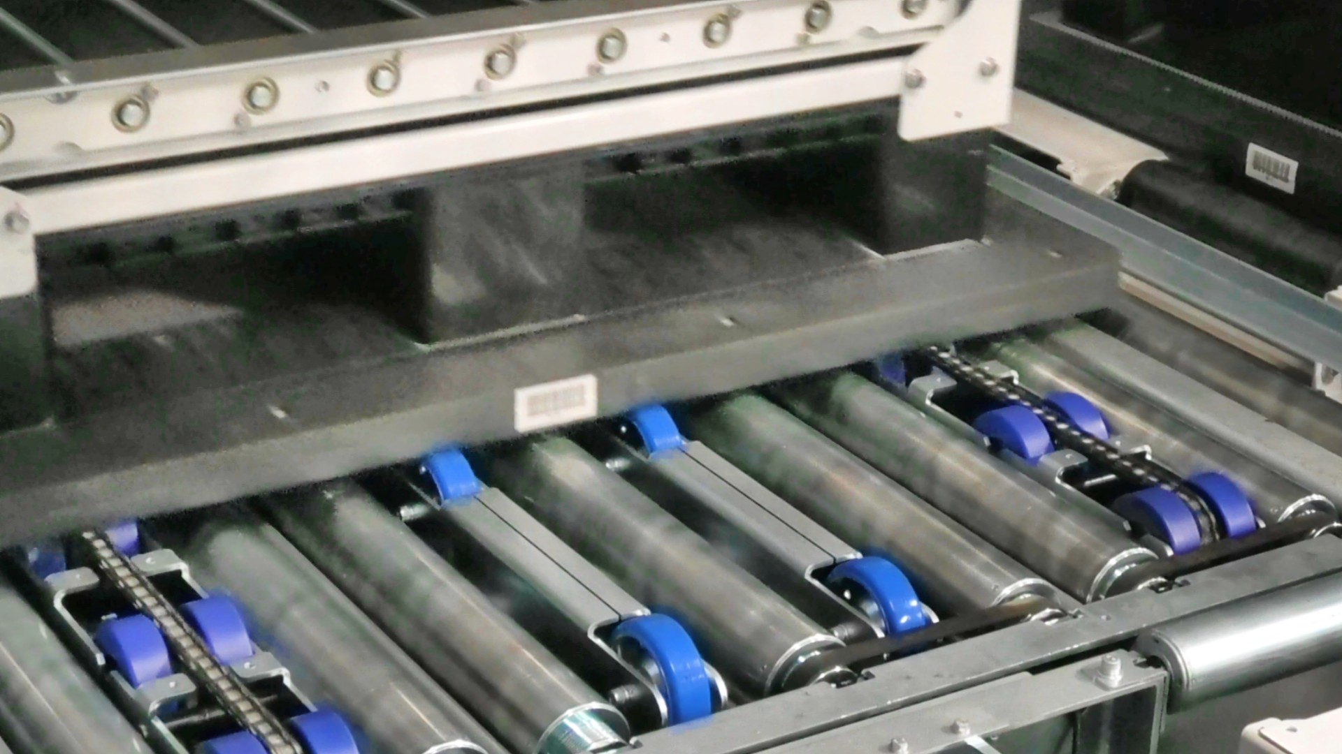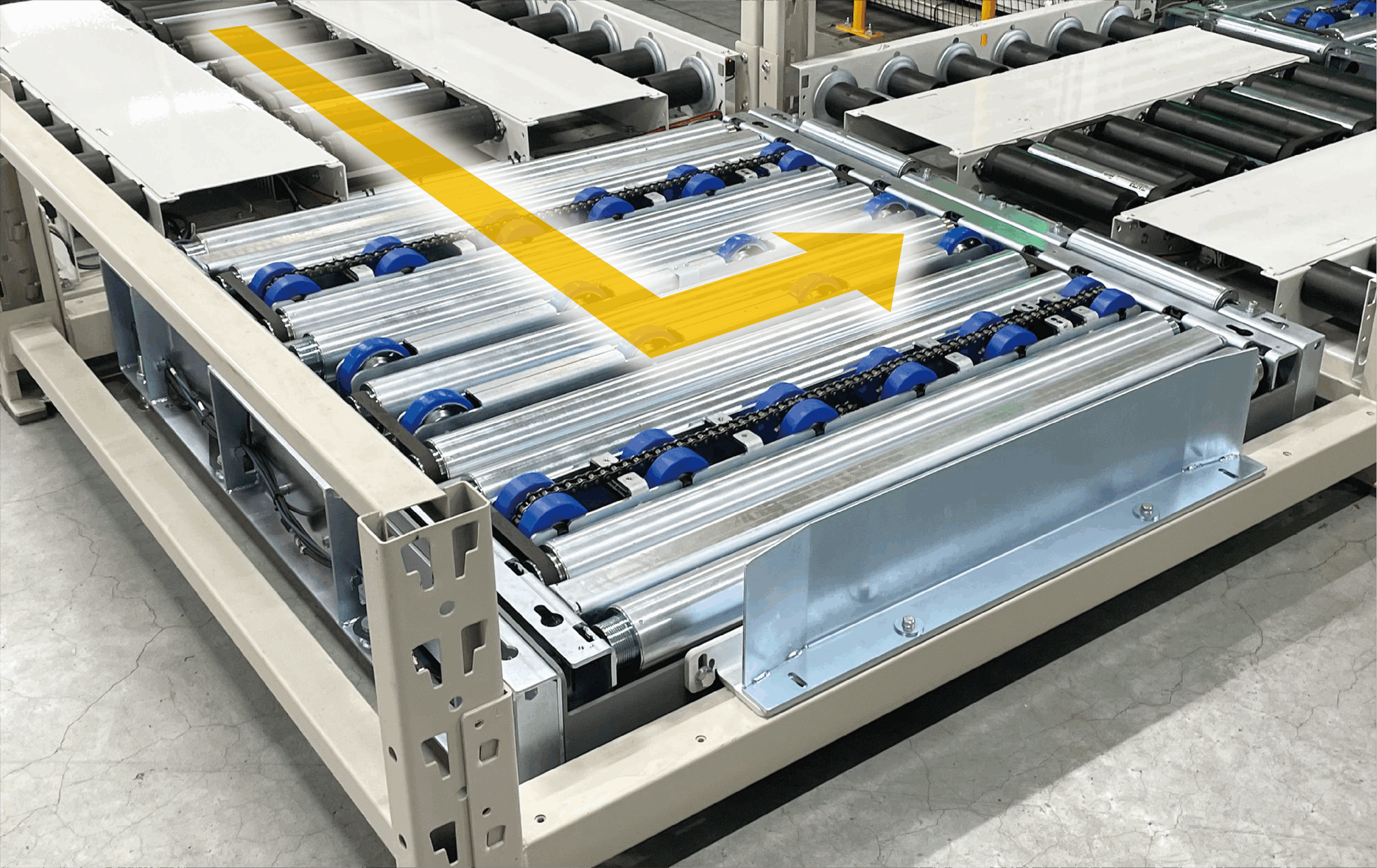 P-RATは、直角搬送機構を持つローラモジュールで、ローラ搬送と合流・分岐搬送を一体化したユニットです。通常はローラで直進搬送を行い、必要に応じてポップアップ機構によって直角方向への搬送が可能となります。合流時のスムーズな切り替えや、交差搬送の自動化、省スペース化に貢献します。従来の複数機器による複雑な合流制御を、1ユニットで簡潔に構成できるため、レイアウト設計や保守の負荷も軽減されます。