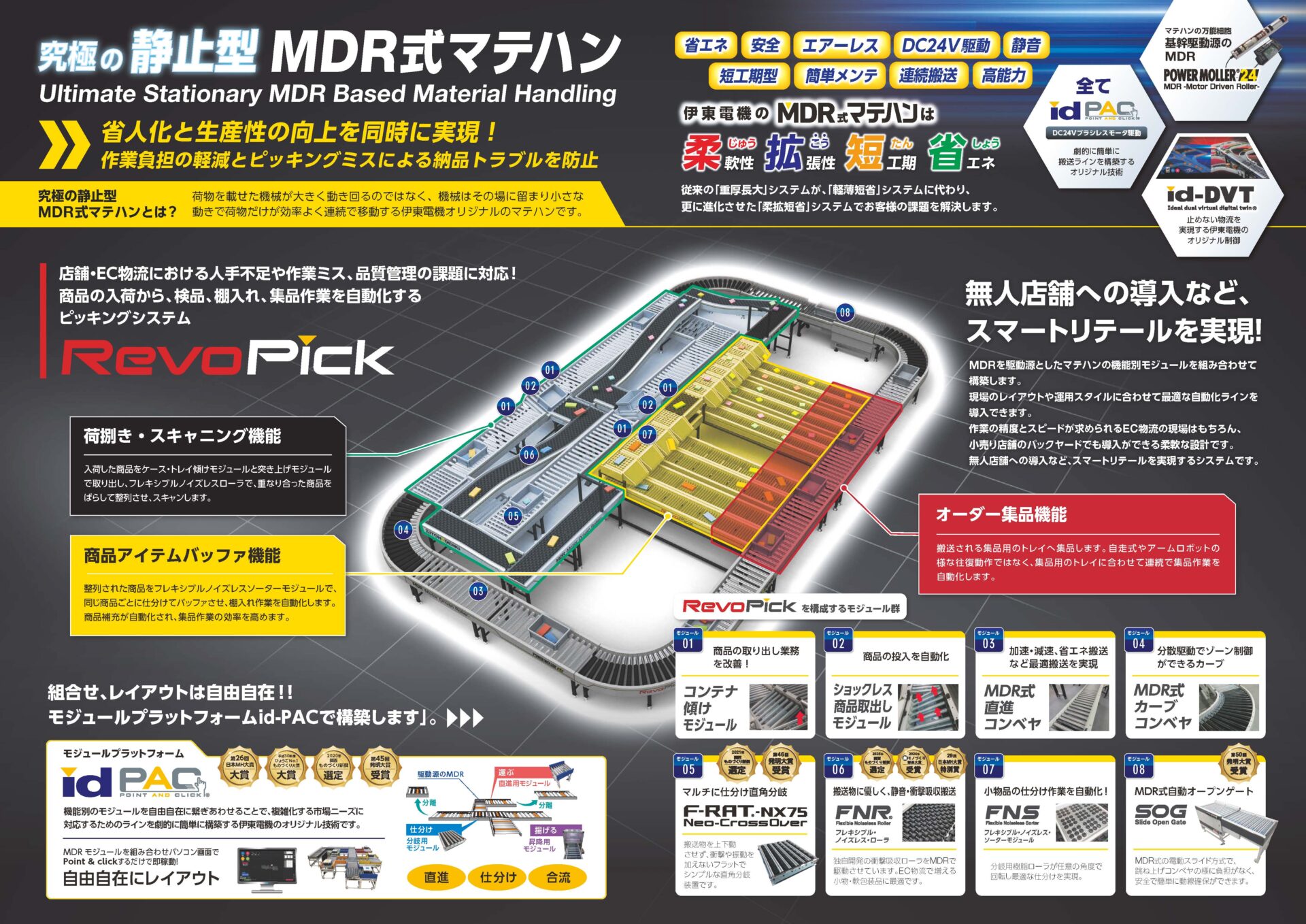 ライン設計・設置・変更がユーザー側で簡単に対応できる、ソフトとハードが融合したIoT化を支援するMDR式コンベアです。
