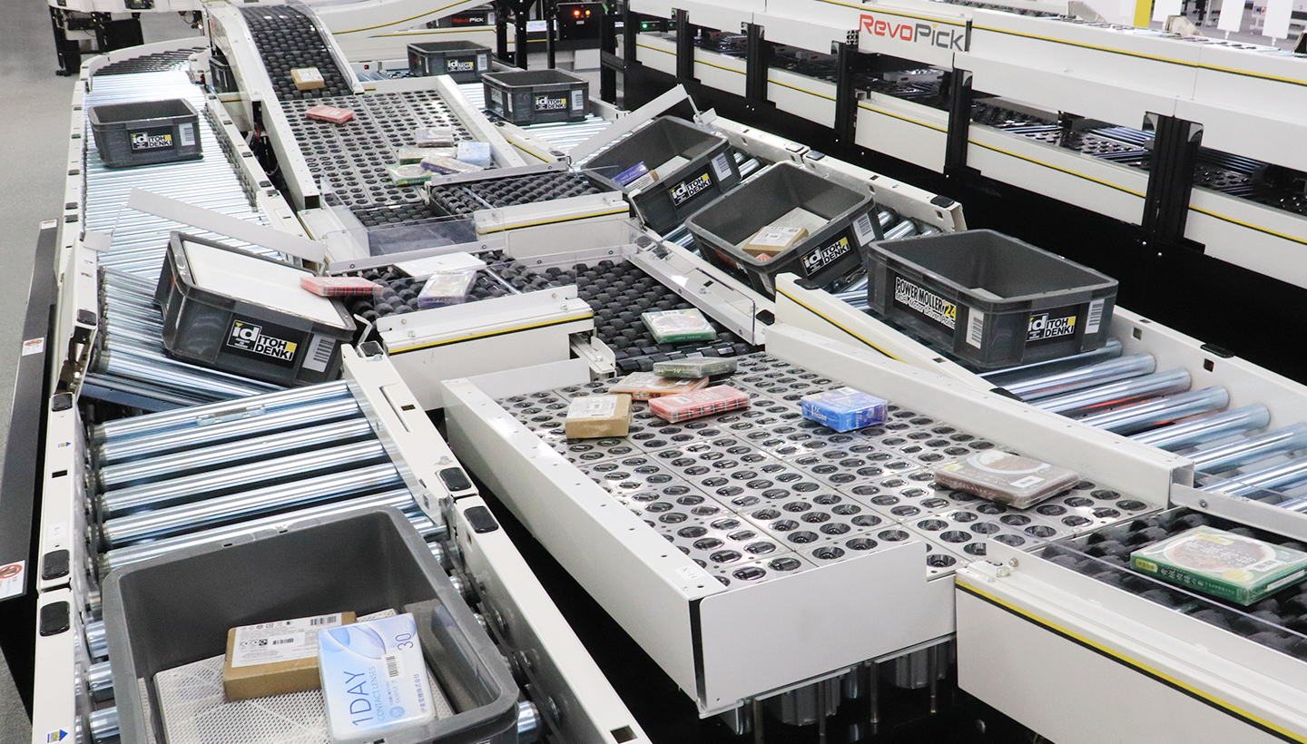 整列された商品をフレキシブルノイズレスソーターモジュールで、同じ商品ごとに分けてバッファさせ、棚入れ作業を自動化します。