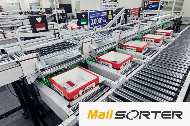 ネット通販物流で増える小口配送、これらの課題を解決 する、 静音・省エネ・小物搬送ソーティングシステムです。