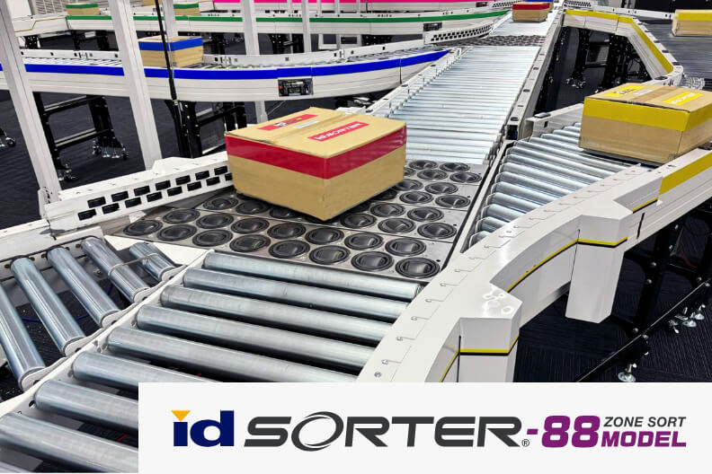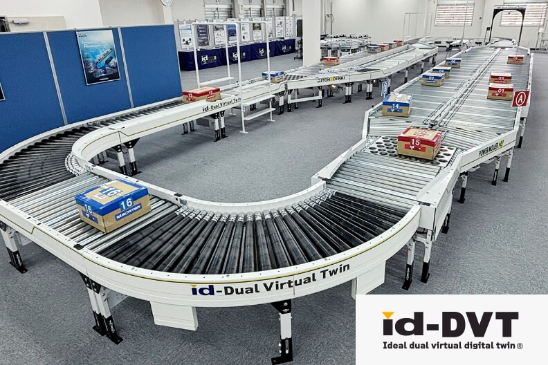 止めない物流を実現する伊東電機オリジナル制御「id-DVT(Ideal dual virtual digital twin) 」 のソーティングシステムです。