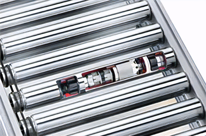 自社開発の駆動式ローラによる細やかなコンベヤ制御