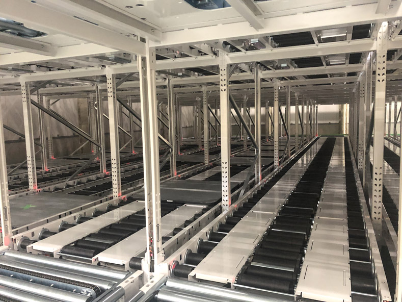 傾斜方向の移載や防火シャッターが閉まるスペースの確保にもフレキシブルに対応可能