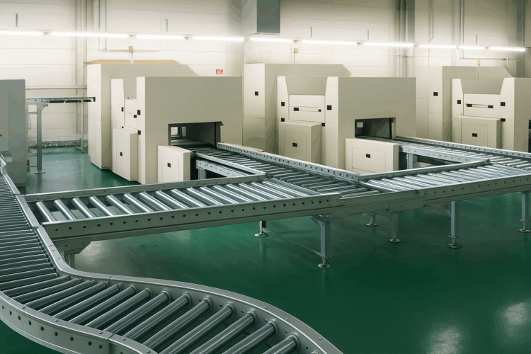 伊東電機のMDRマテハンシステムは、駆動式ローラによってパレットやケースの自動搬送を実現します。センサー連動による停止・スタート制御や、ラインの合流・分岐も可能で、複雑な搬送も自動化可能。既存ラインへの後付けも容易で、部分的な自動化から全体最適まで段階的に対応できます。