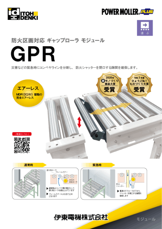 災害などの緊急時にコンベヤラインを分断し、 防火シャッターを閉口する隙間を確保します。